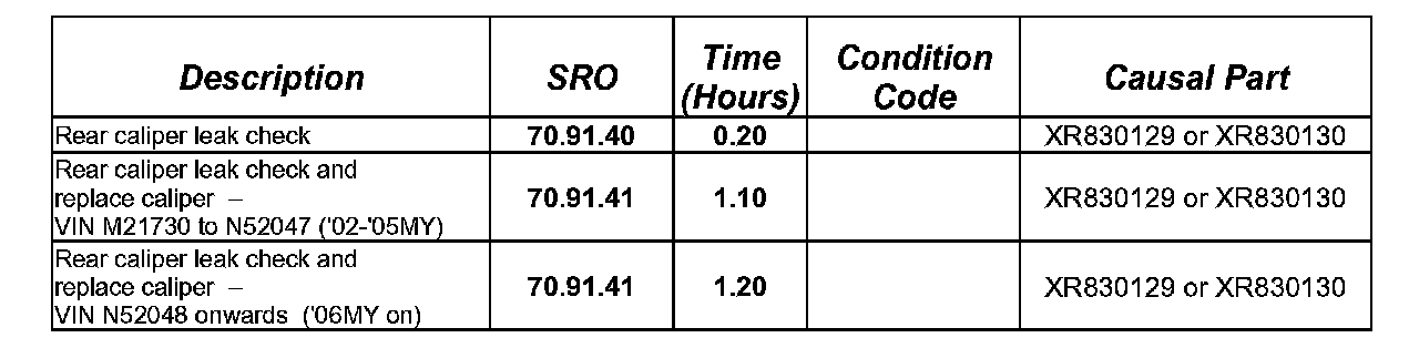 13. If a brake fluid leak is detected, refer to GTR section 06-04 (70.55.03) and install a new rear brake caliper.