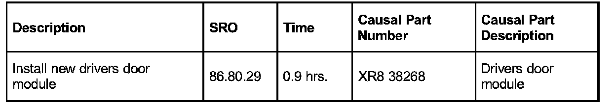 This will result in payment of the stated time and, where applicable parts/miscellaneous expense codes as listed.
