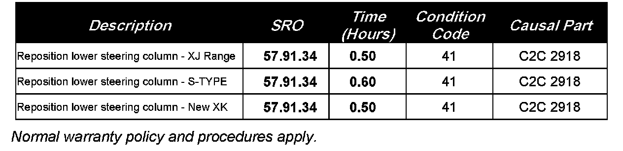 2. If the vehicle is an XJ or New XK vehicle, refer to GTR Workshop Manual, section: 211-04 (57.40.05) to install and align the steering column lower shaft.