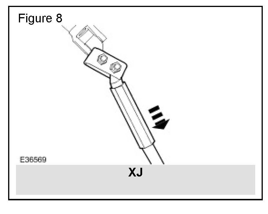 8. Reposition the lower column swinging link to its highest position. * (Figure 10 for New XK and S-TYPE and Figure 11 for XJ)*
