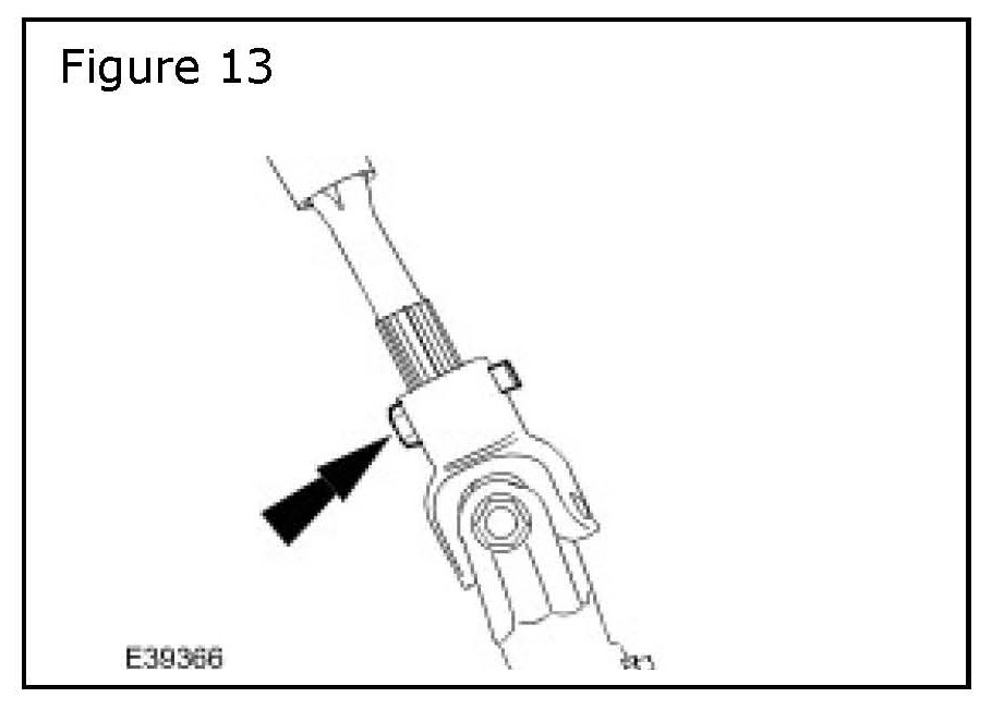 10. Fully tighten the new lower column pinch bolt, install the new fastener and tighten to 35 Nm. (Figure 13)