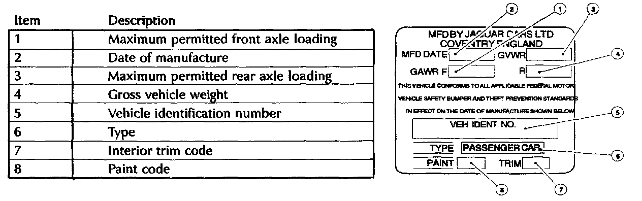 The vehicle certification label also contains a 17 character vehicle identification number. This number is used for warranty identification of the vehicle.