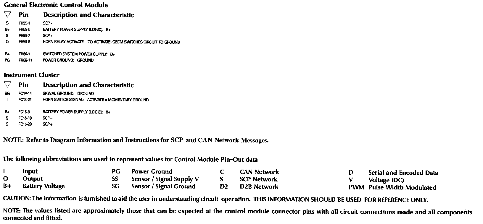 Control Module Pin-Out Information: