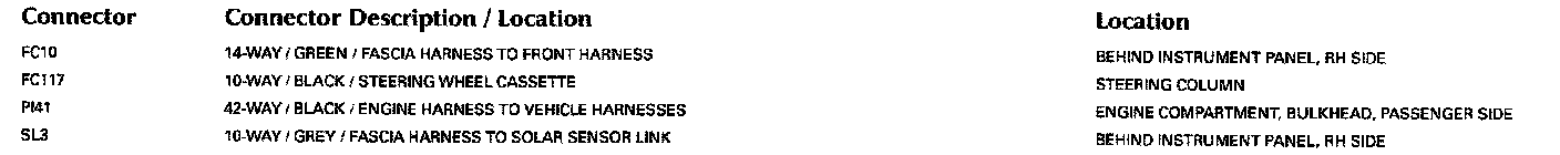 For detailed informations and illustrations regarding the location and identification of control modules pins, refer to Vehicle/Diagrams/Connector Views. Connector Views