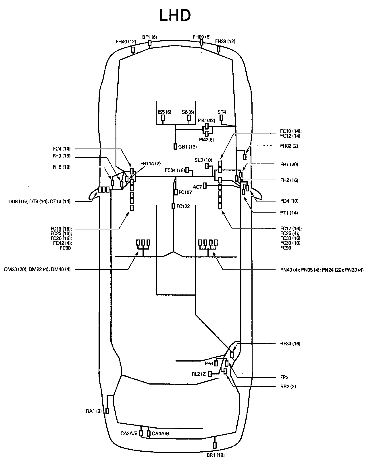 : WHERE THE INFORMATION IS AVAILABLE, THE NUMBER OF PINS CONTAINED IN A CONNECTOR IS SHOWN IN PARENTHESES.