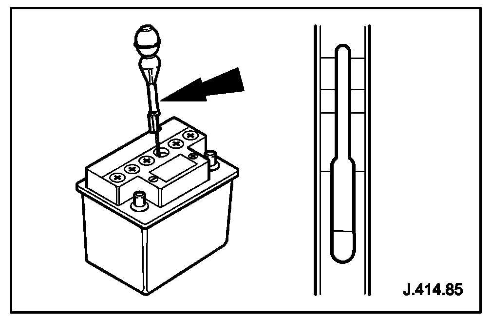- Squeeze the bulb of the battery hydrometer and insert the tube into the first cell (No 1 Cell) and draw the battery electrolyte out of the cell and into the hydrometer.