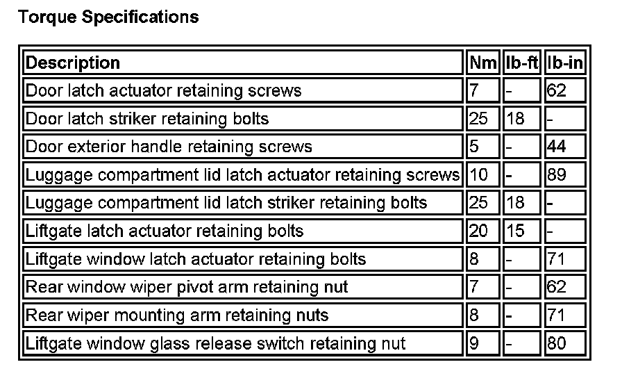 Torque Specifications: