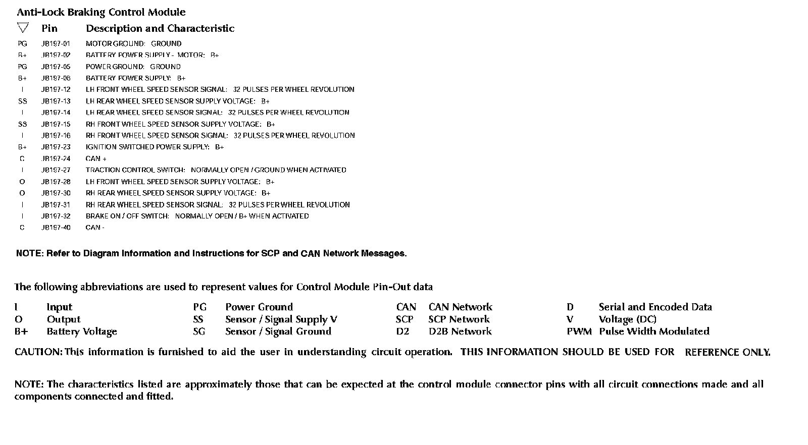 Control Module Pin-out Information: