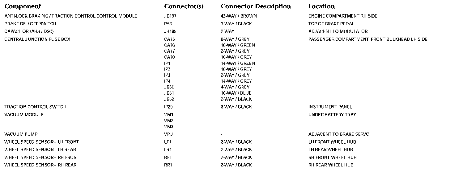 For detailed informations and illustrations regarding the location and identification of control modules pins, refer to Vehicle / Diagrams. Connector Views
