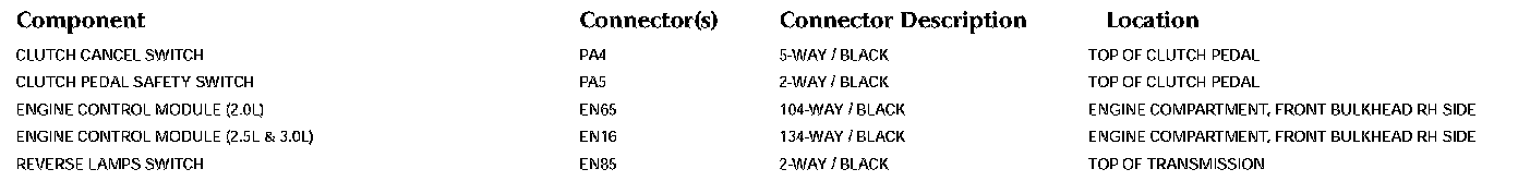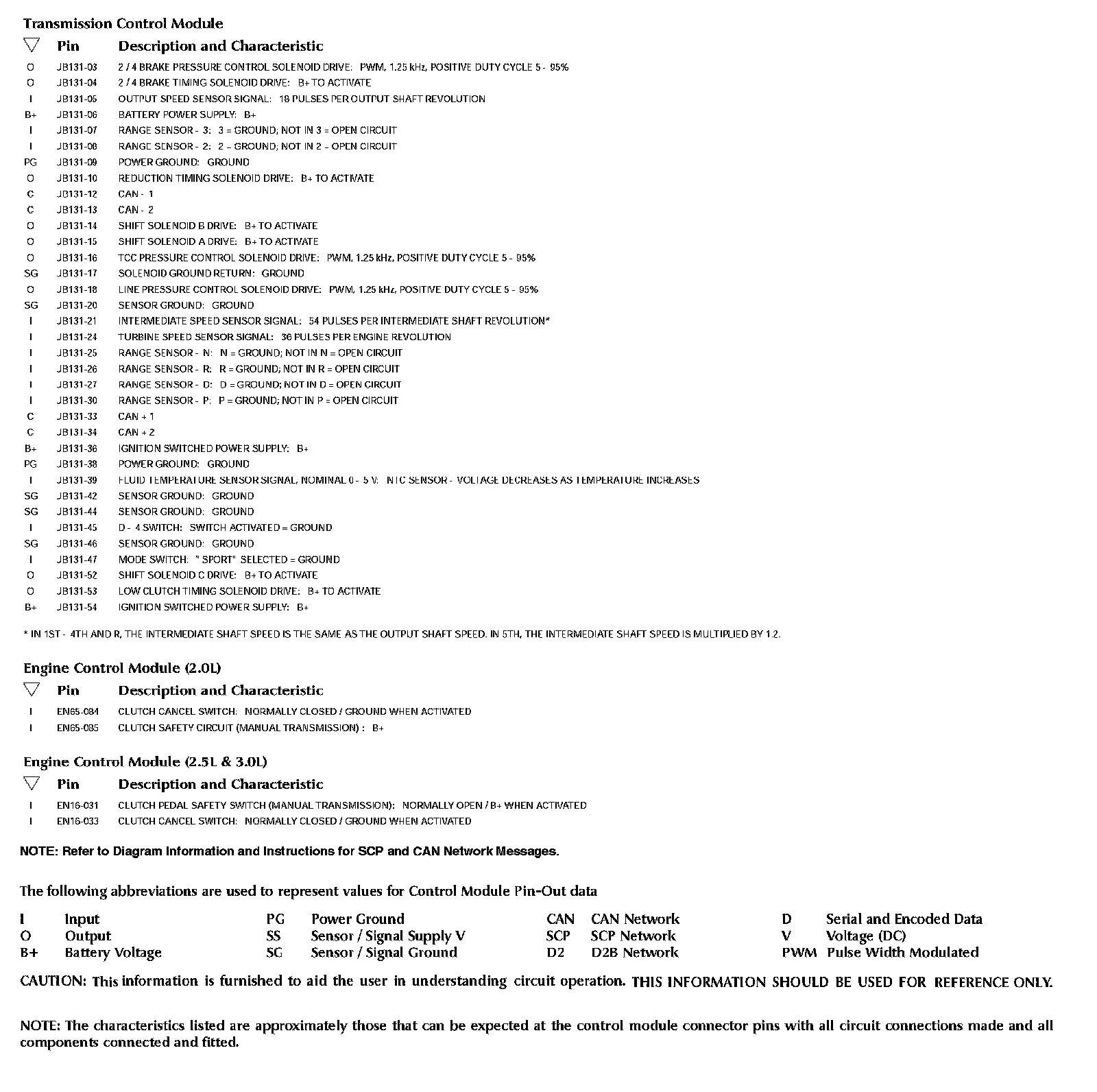 Control Module Pin-Out Information: