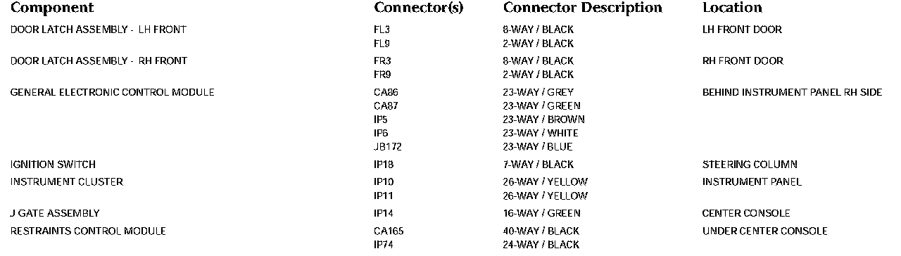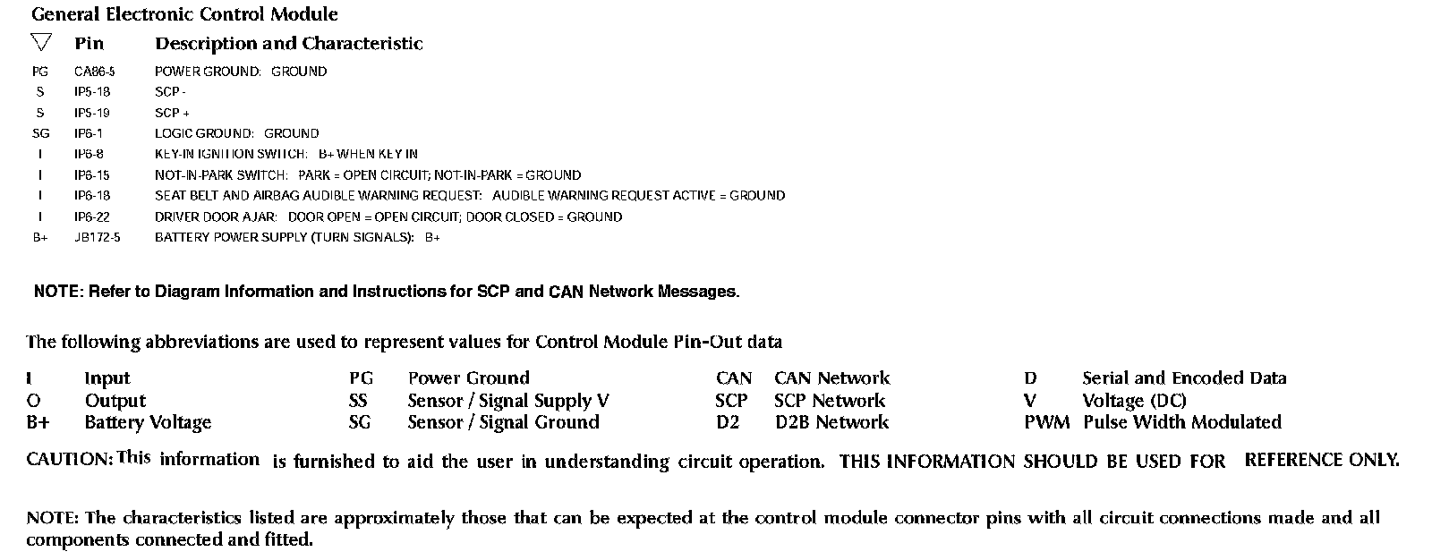 Control Module Pin-out Information: