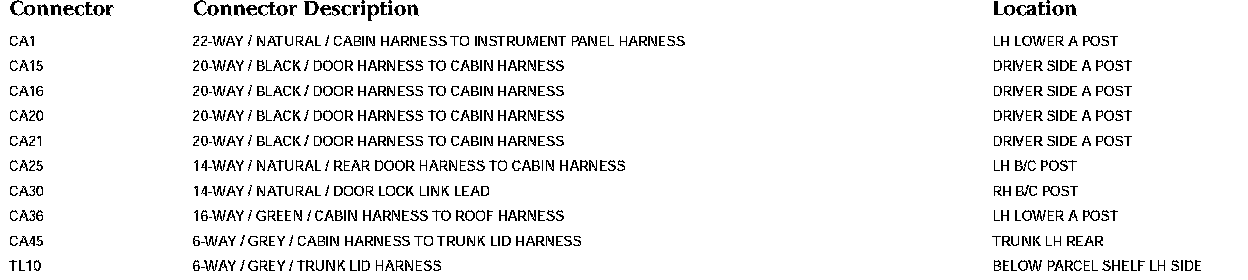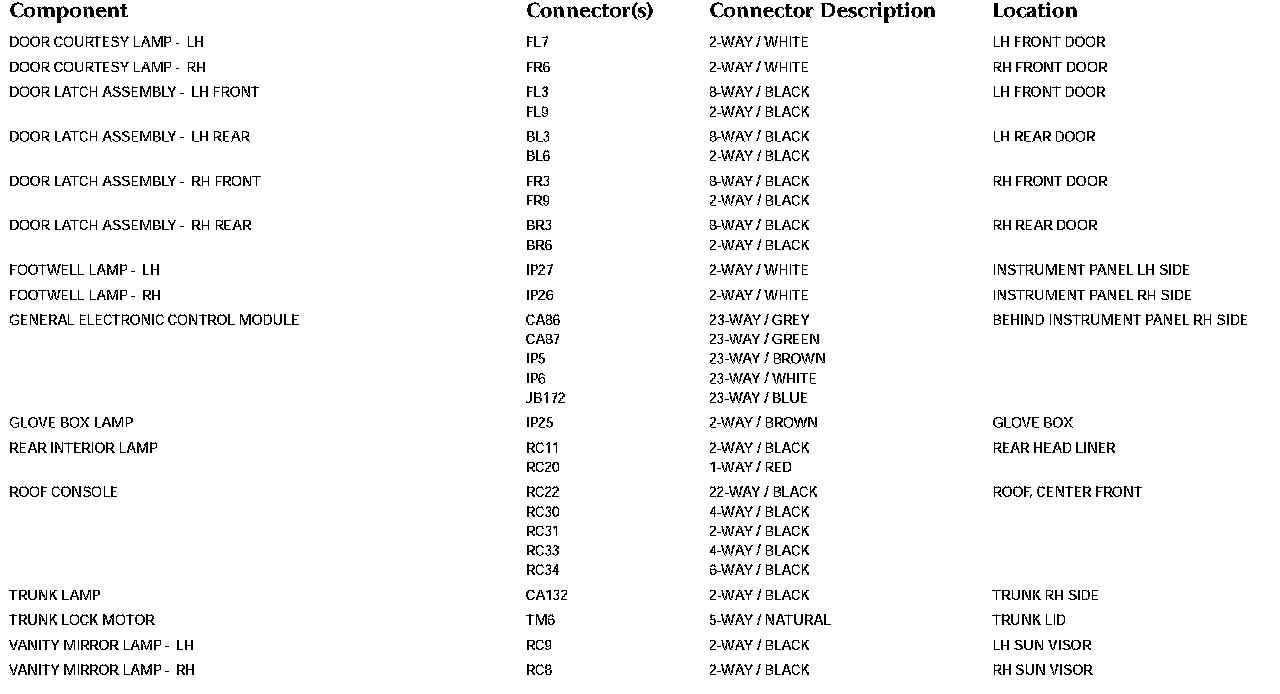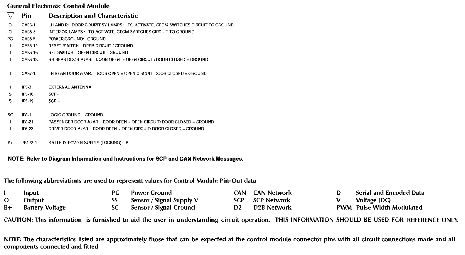 Control Module Pin-out Information:
