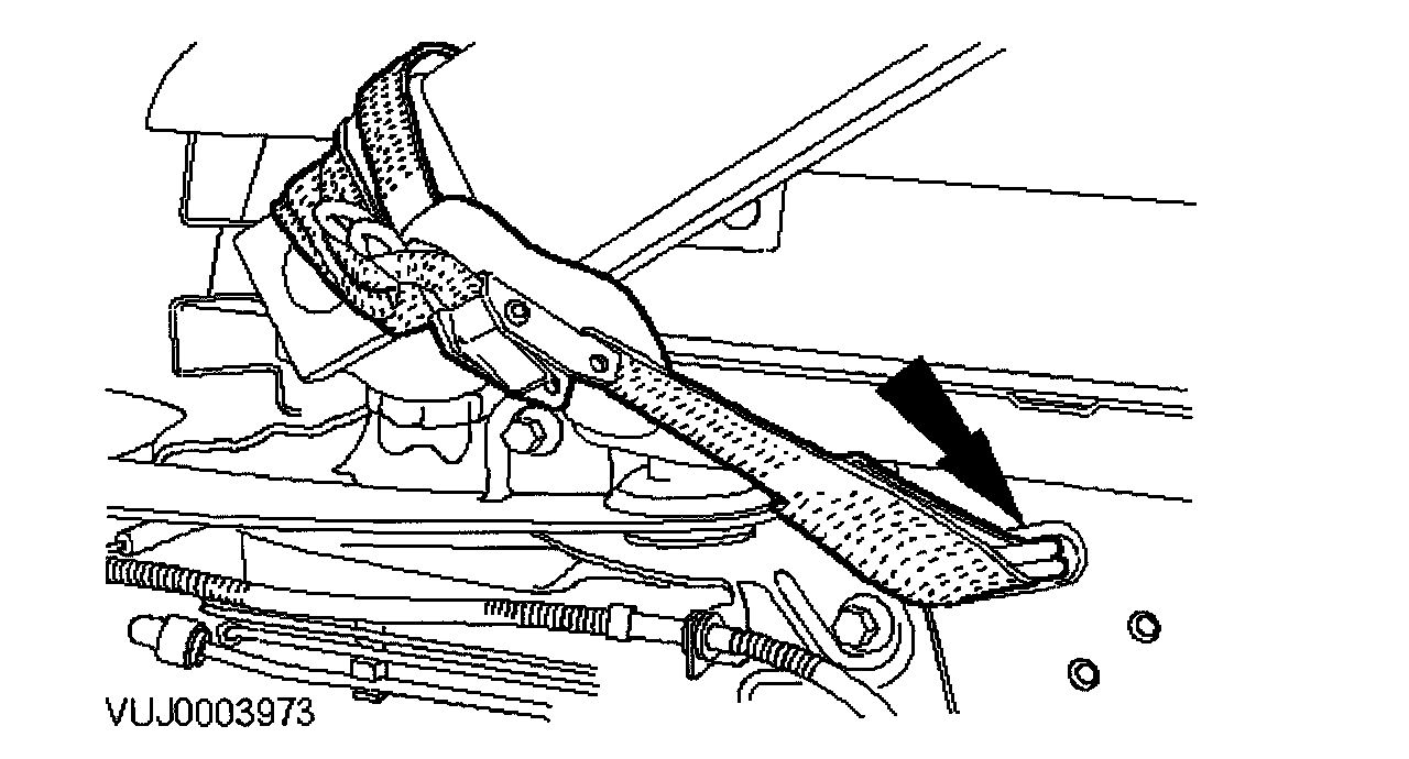 7. CAUTION: To prevent the vehicle becoming unstable when the engine and transmission assemble are removed, install the vehicle tie-down straps.