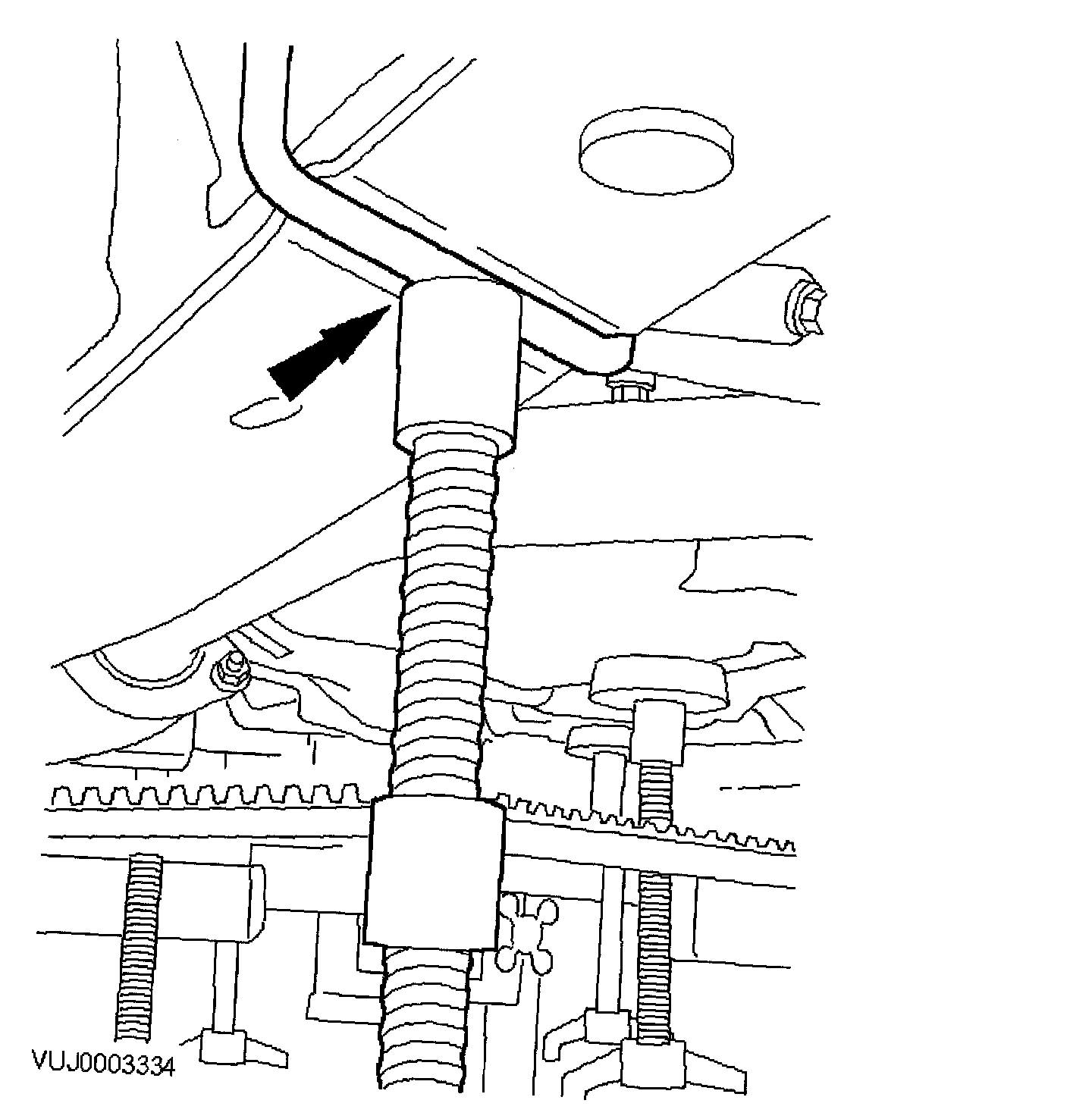 1. Remove the steering column lower retaining bolt.