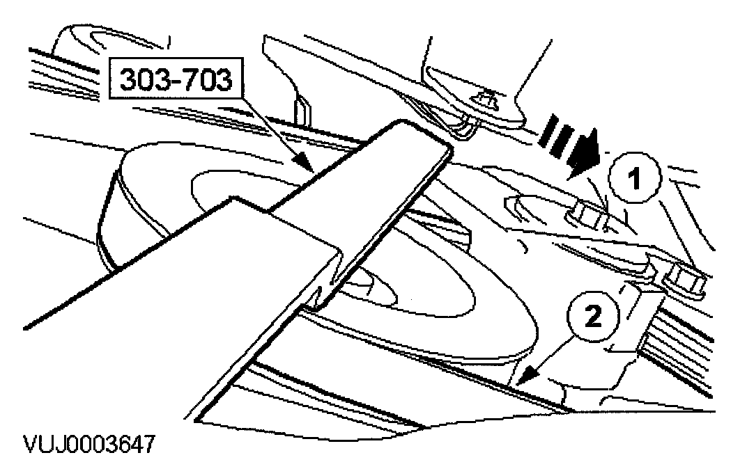 1. Using the special tool, rotate the belt tensioner counter clockwise.