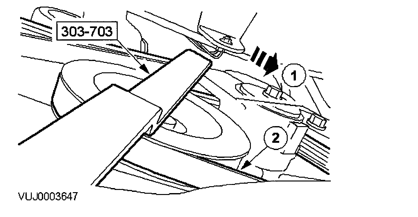 1 Using the special tool, de-tension the accessory drive belt.