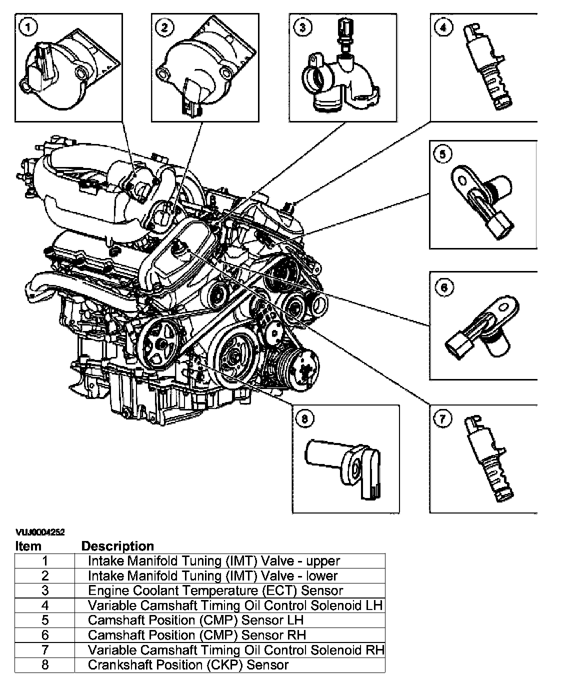 The camshaft position (CMP) sensors monitor the position of both camshafts to allow the PCM to control the phase of the inlet camshafts relative to the position of the crankshaft.