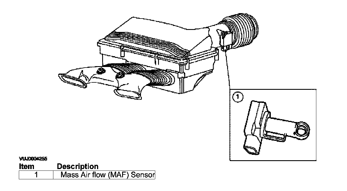 The mass air flow (MAF) sensor informs the PCM of the rate of air flow entering the engine by producing a voltage which is proportional to the rate of air flow into the engine. The voltage produced by the MAF sensor increases as the rate of air flow increases. The MAF sensor also takes into account the density of the air entering the air intake system so that it is possible to maintain the required air to fuel ratio, and to compensate for variations in atmospheric pressure.
