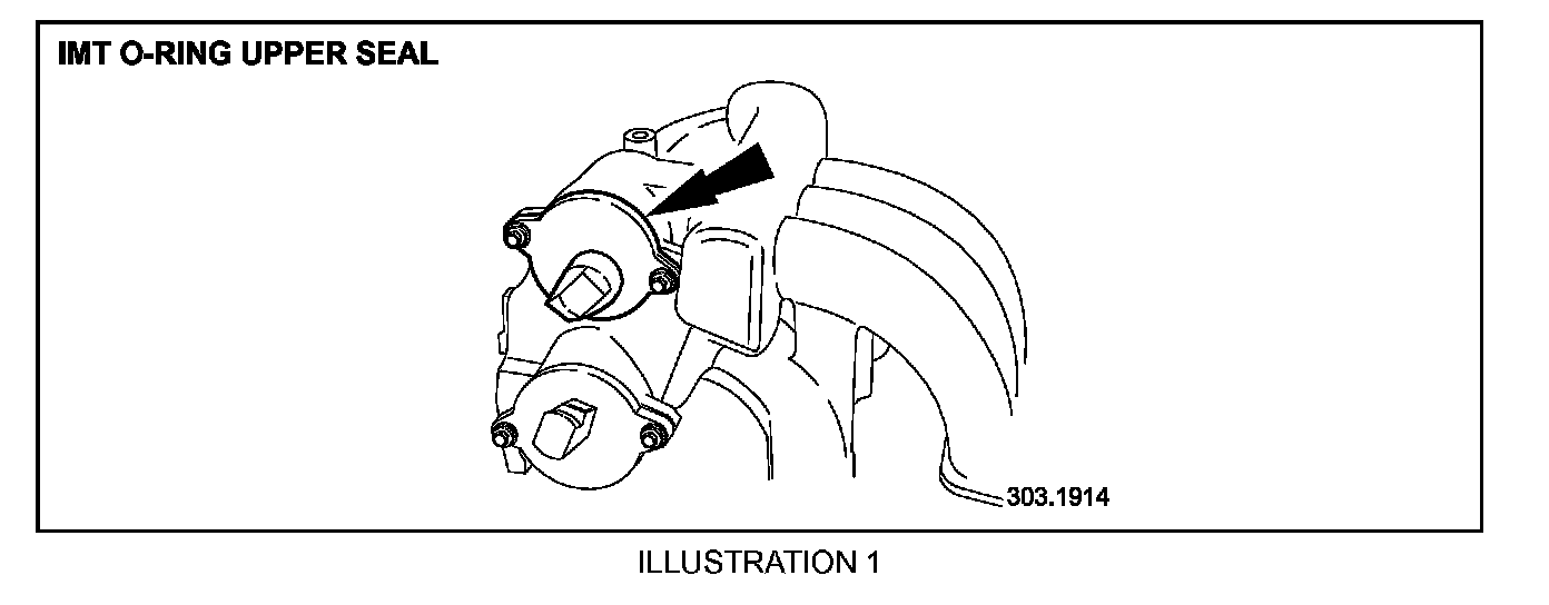 3. Remove the IMI valve securing bolts and displace and remove the IMI valve from the intake manifold. Remove and discard the 0-ring seal (Illustration 1).