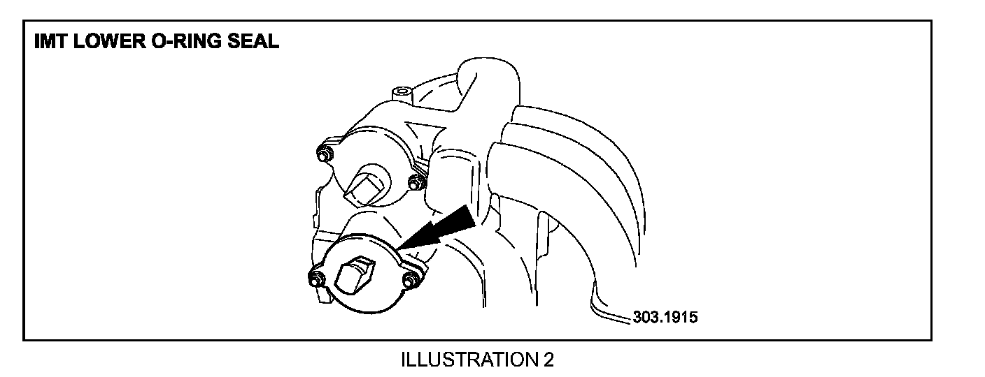 4. Remove the lower IMT valve securing bolts and displace and remove the lower IMT valve from the intake manifold. Remove and discard the 0-ring seal (Illustration 2).