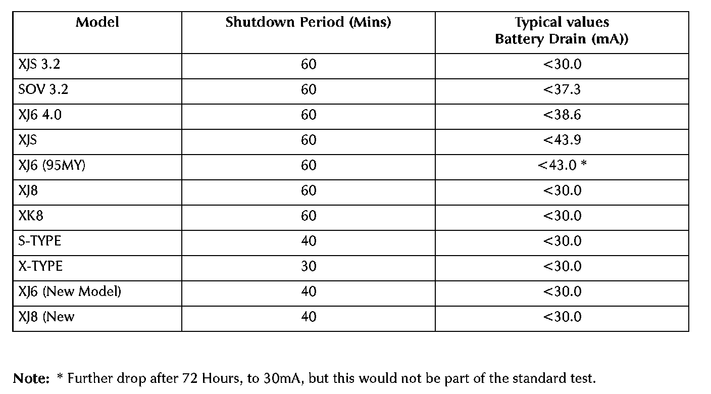 NOTE: The total current drain will be higher if certain Jaguar approved accessories (e.g. Tracker; Cool bag; Trailer Tow Module) are fitted.