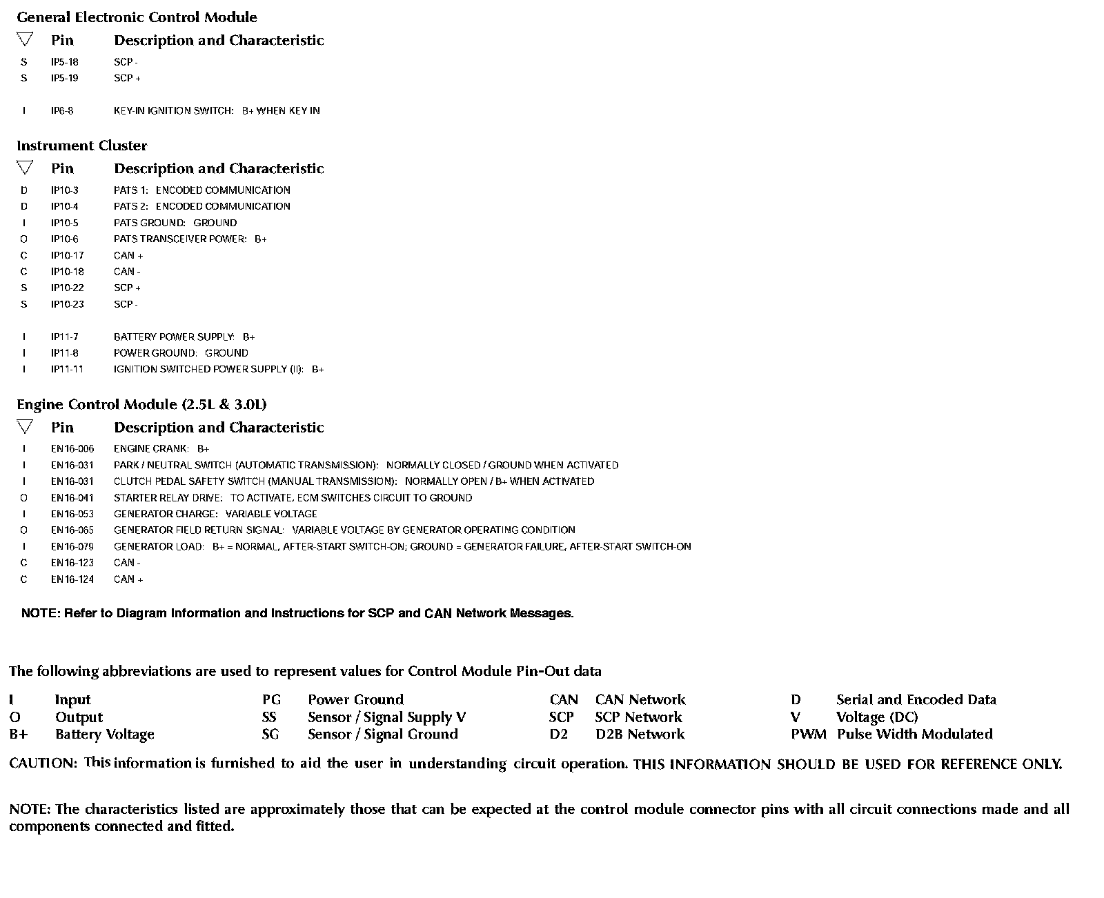 Control Module Pin-out Information:
