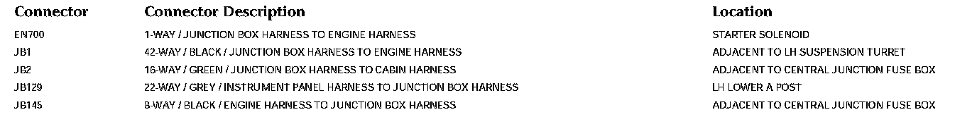 Refer to Vehicle / Locations for detailed information and illustrations regarding the location and identification of harnesses, relays, grounds and control modules. Locations