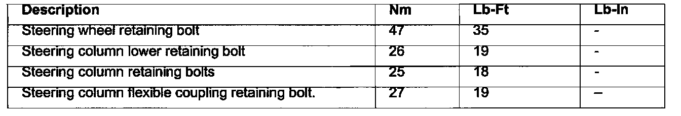 Steering Column: Specifications