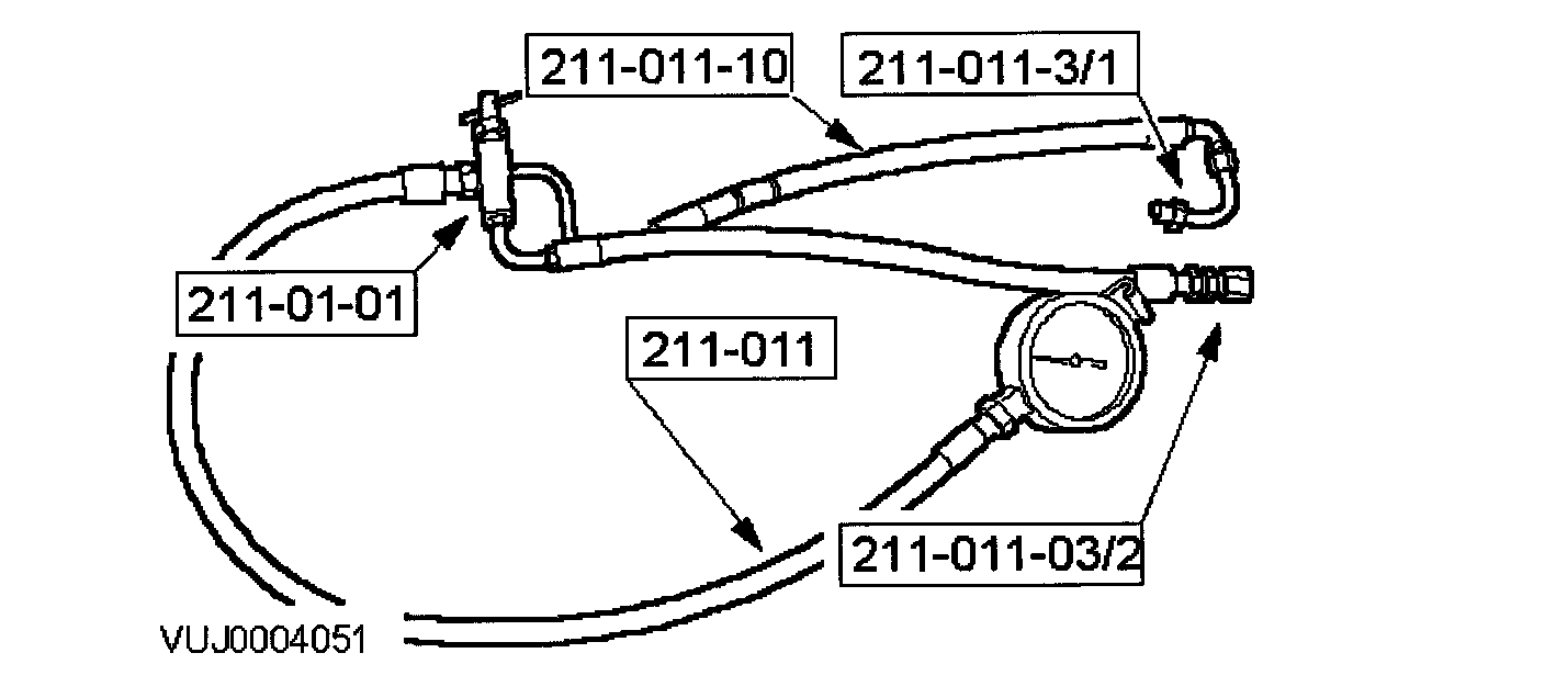 ^ Close the tap on the hydraulic test adapter, 211-01-01, to cut off fluid through the system.
