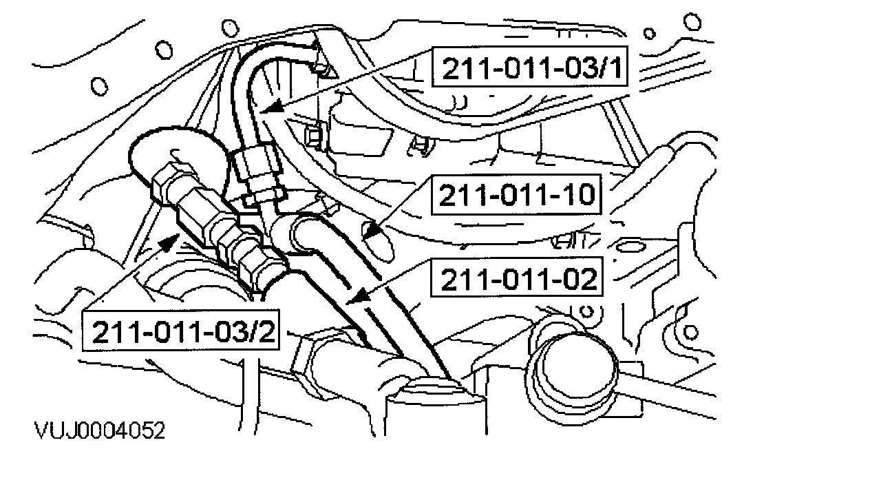 ^ Connect adapter 211-011-03/2 to the high pressure hose to the steering gear.