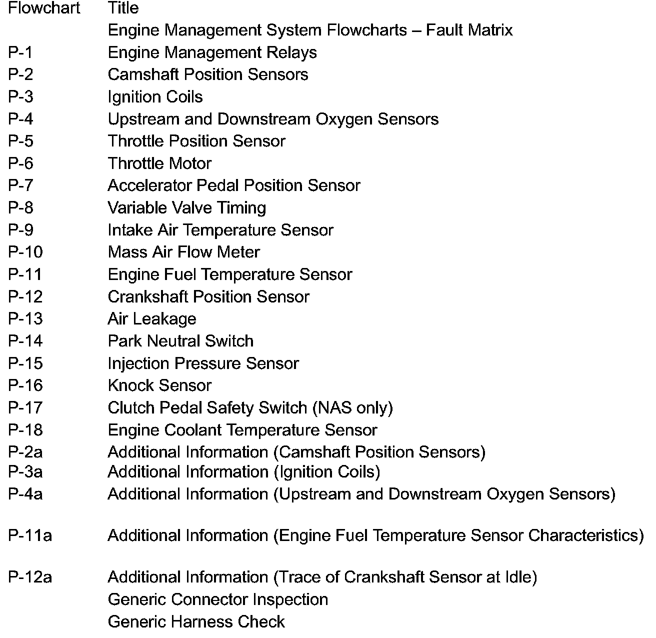 ENGINE MANAGEMENT SYSTEM FLOWCHARTS - TABLE OF CONTENTS