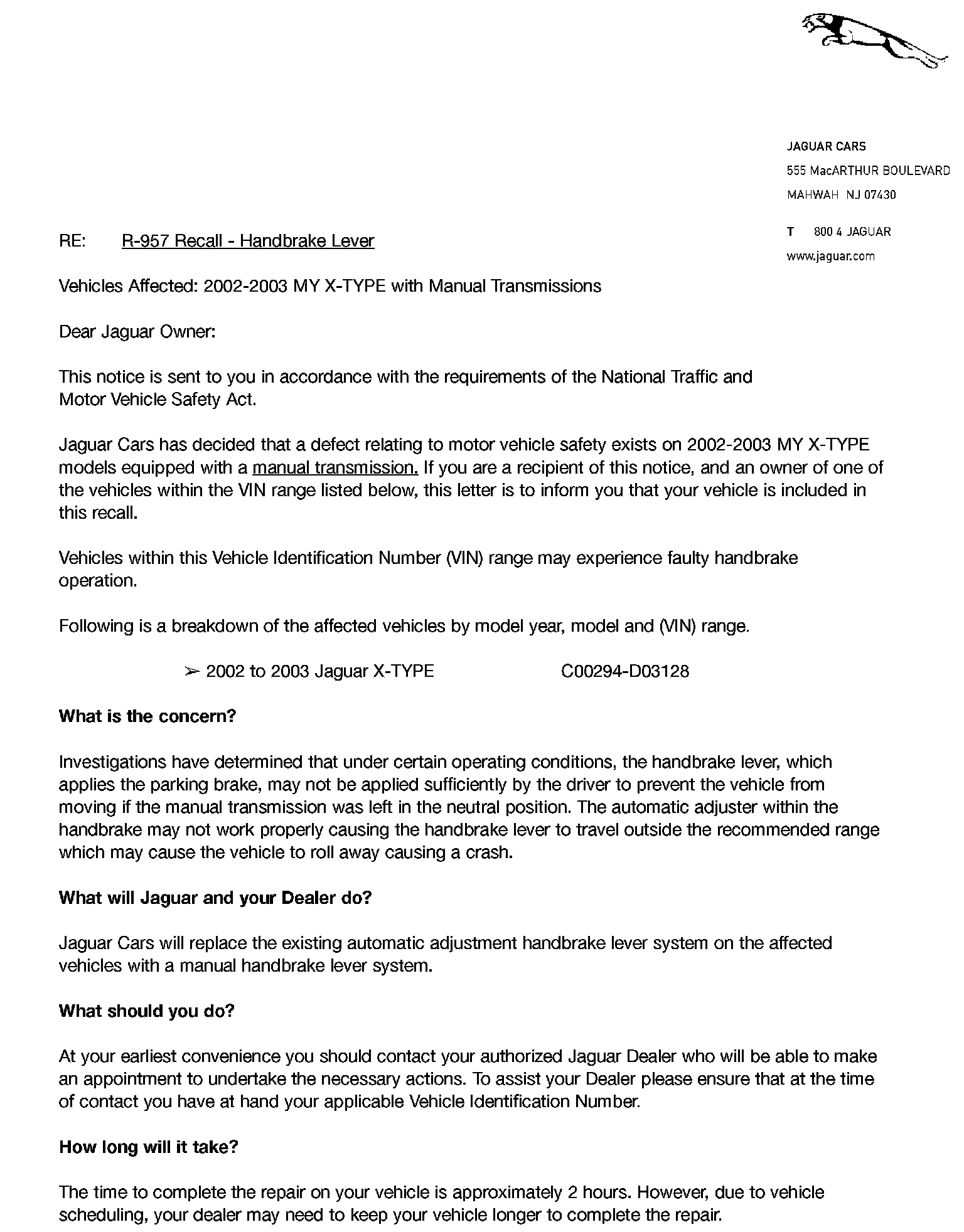 Recall - Park Brake Lever Replacement