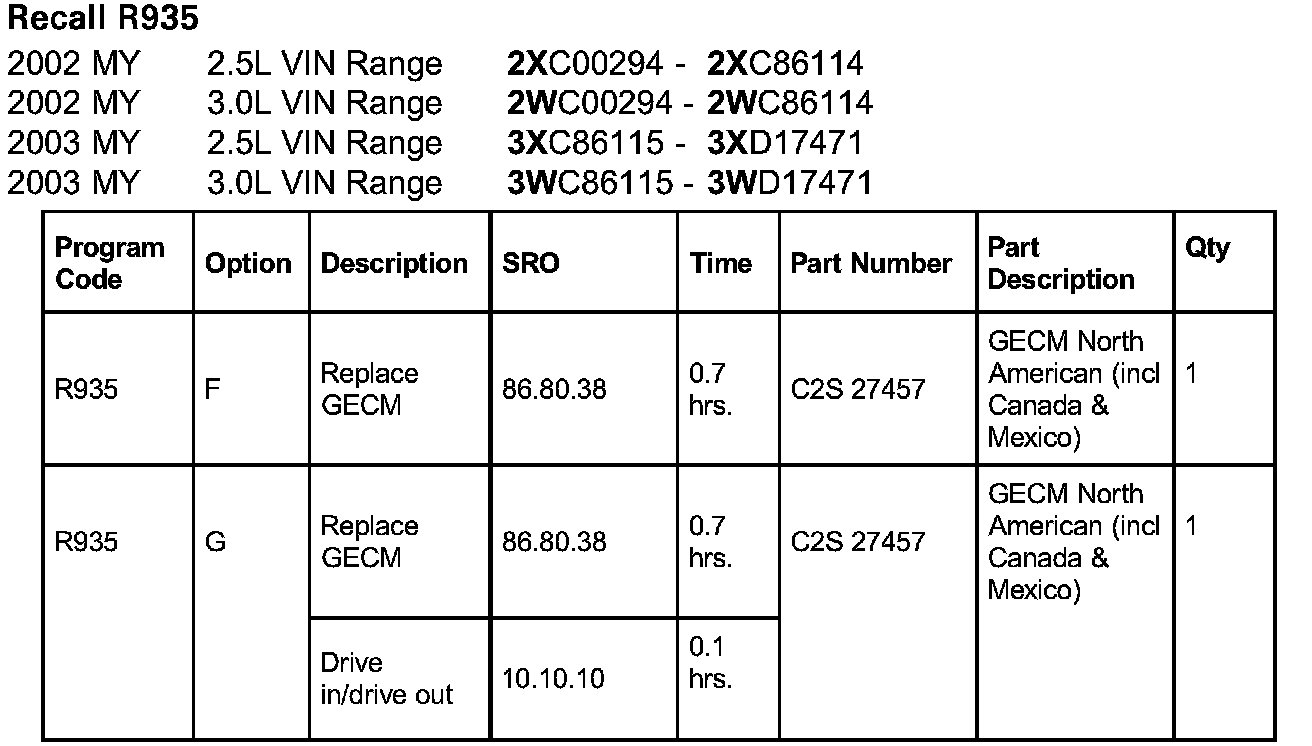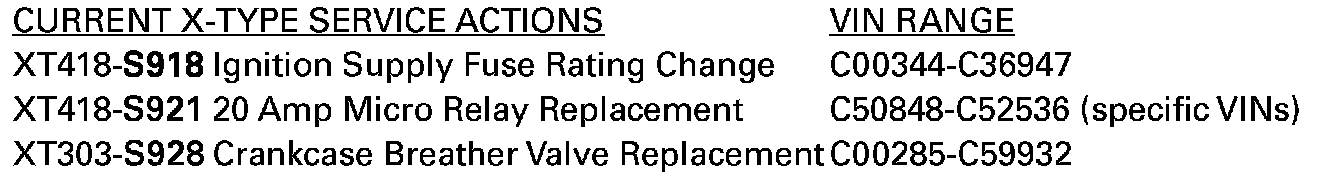 In conjunction with this Recall Action, Service Action S934 Restraints Control Module Re-program will be released which is an owner notification program and affects all X-TYPE vehicles within the VIN range of C00294 to C90822. You should ensure that all repairs are completed at one visit.