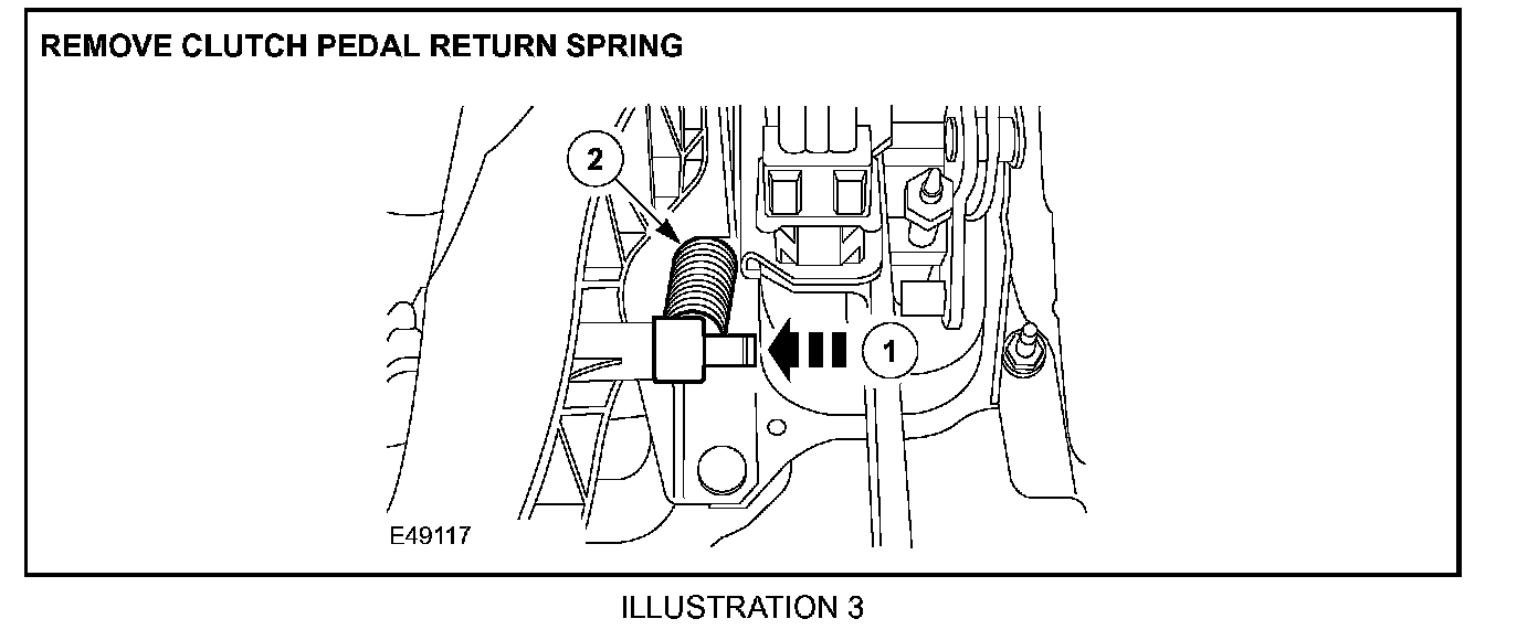 4. Manual vehicles only: Remove the clutch pedal return spring (Illustration 3).