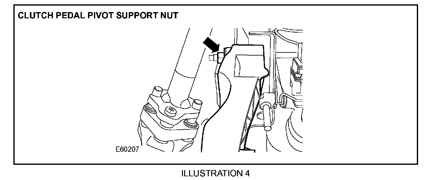 5. Manual vehicles only: Remove the clutch pedal pivot securing nut (Illustration 4).