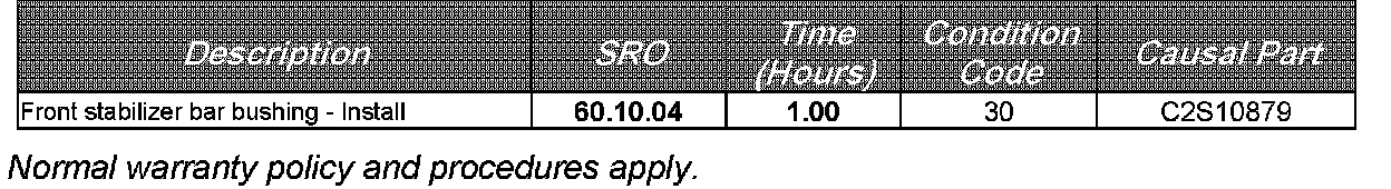 In the event of a customer concern of the above, follow the Repair Procedure below to replace the front stabilizer bar bushings.
