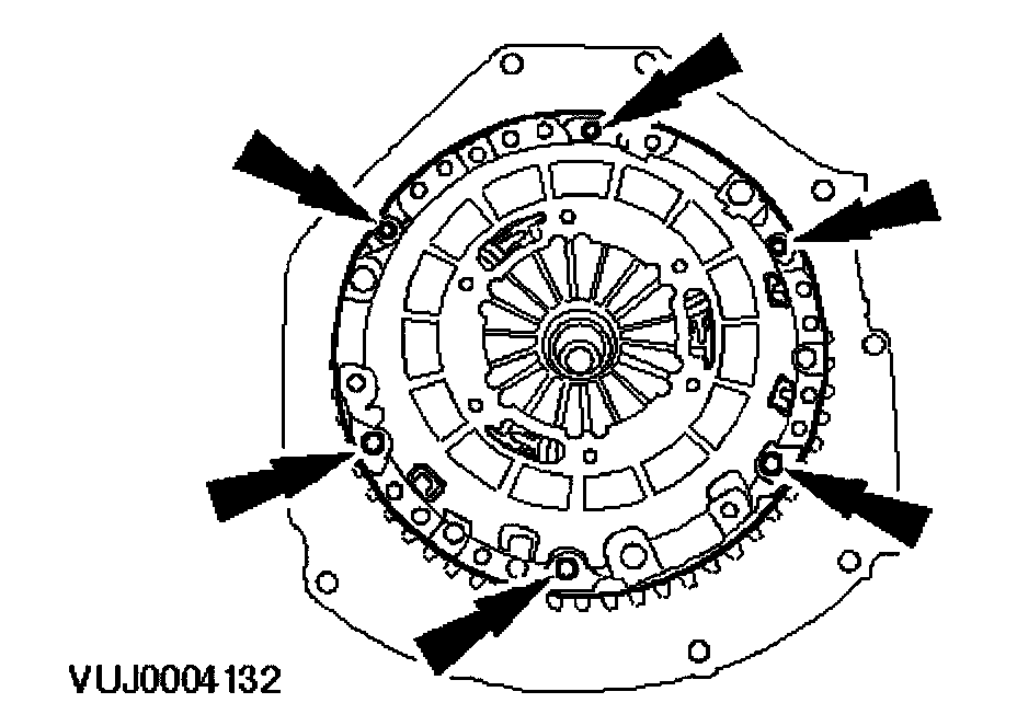 ^ Remove the pressure plate bolts in a uniform sequence.