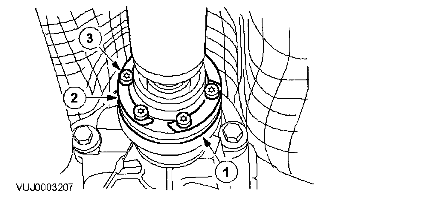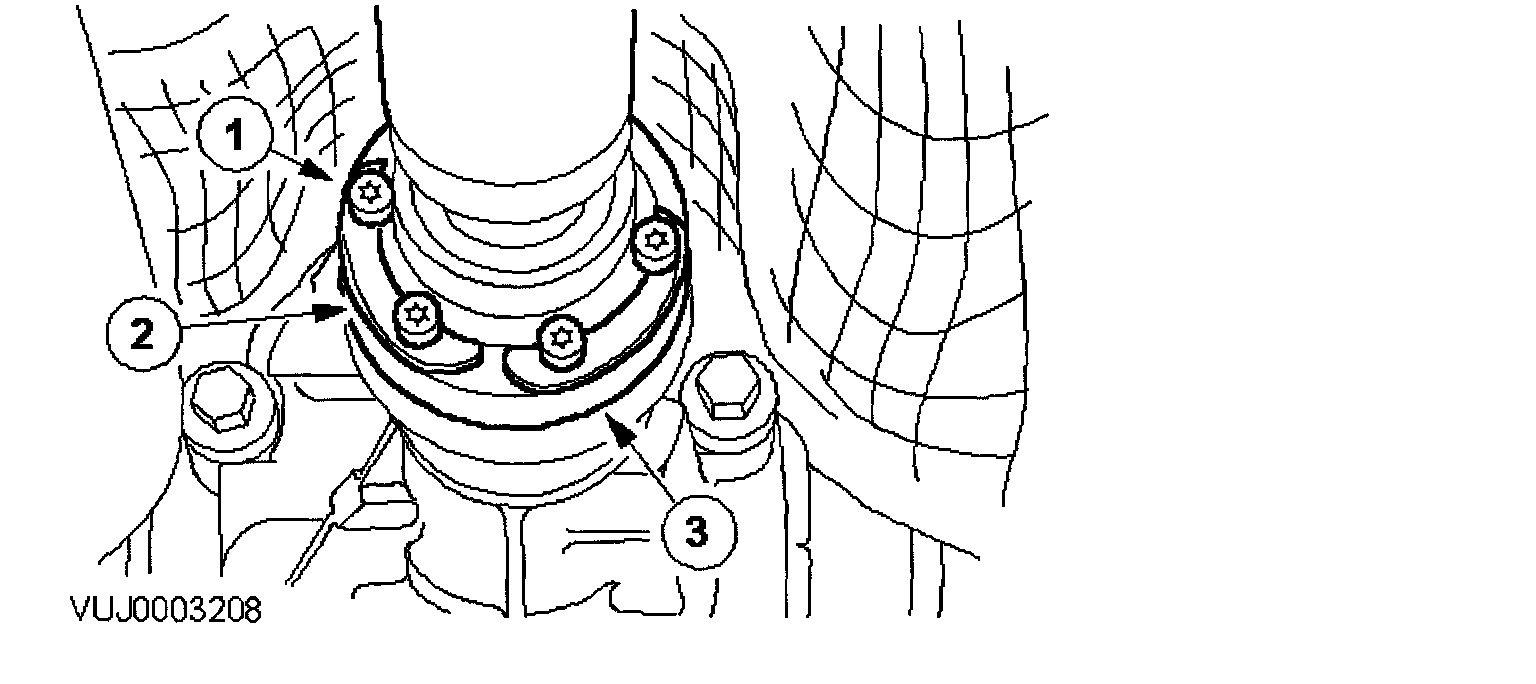 12. Tighten the drive shaft center bearing retaining bolts to 25 Nm.
