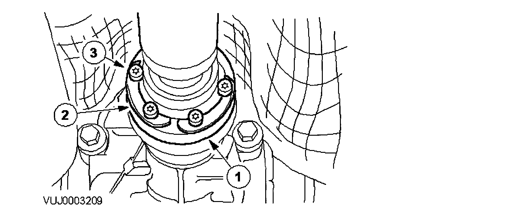 3. Install new driveshaft retaining bolts.