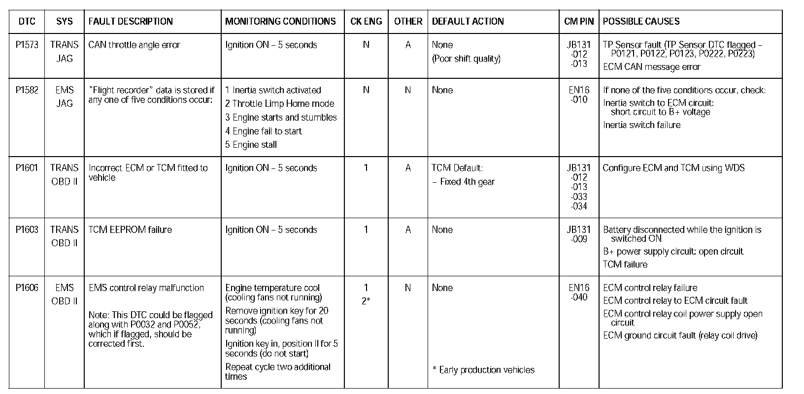 DTC P1573 - P1606: