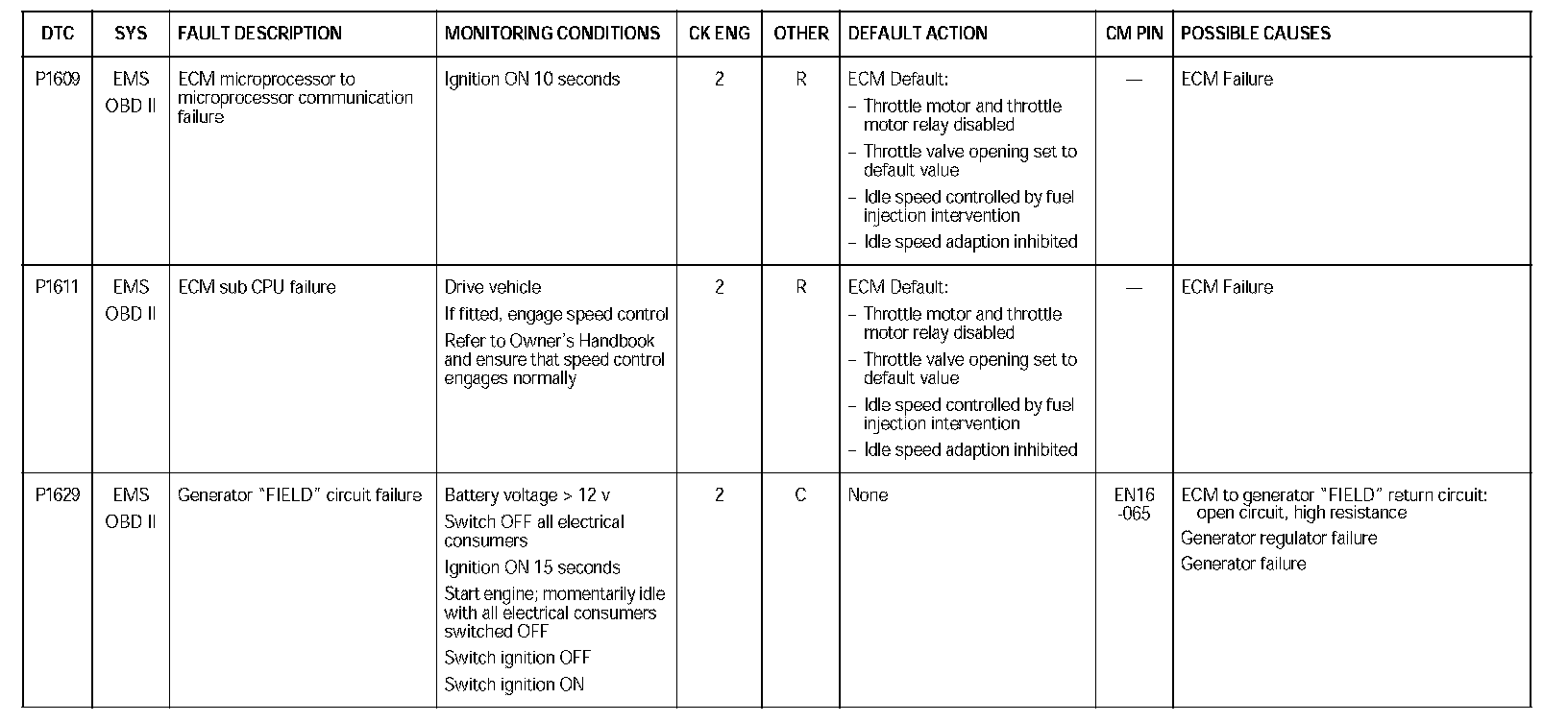 DTC P1609 - P1629: