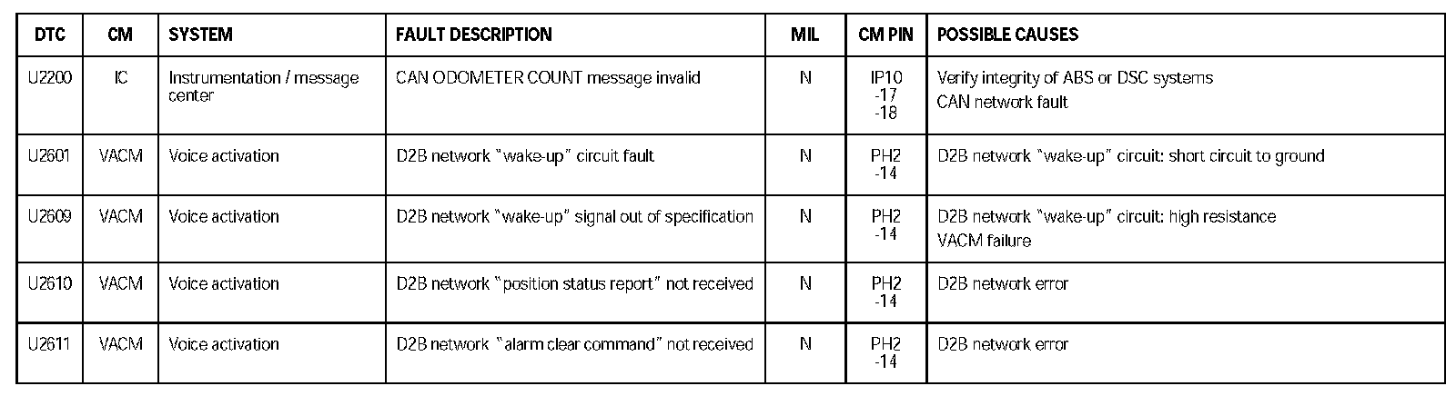 DTC U2200 - U2611: