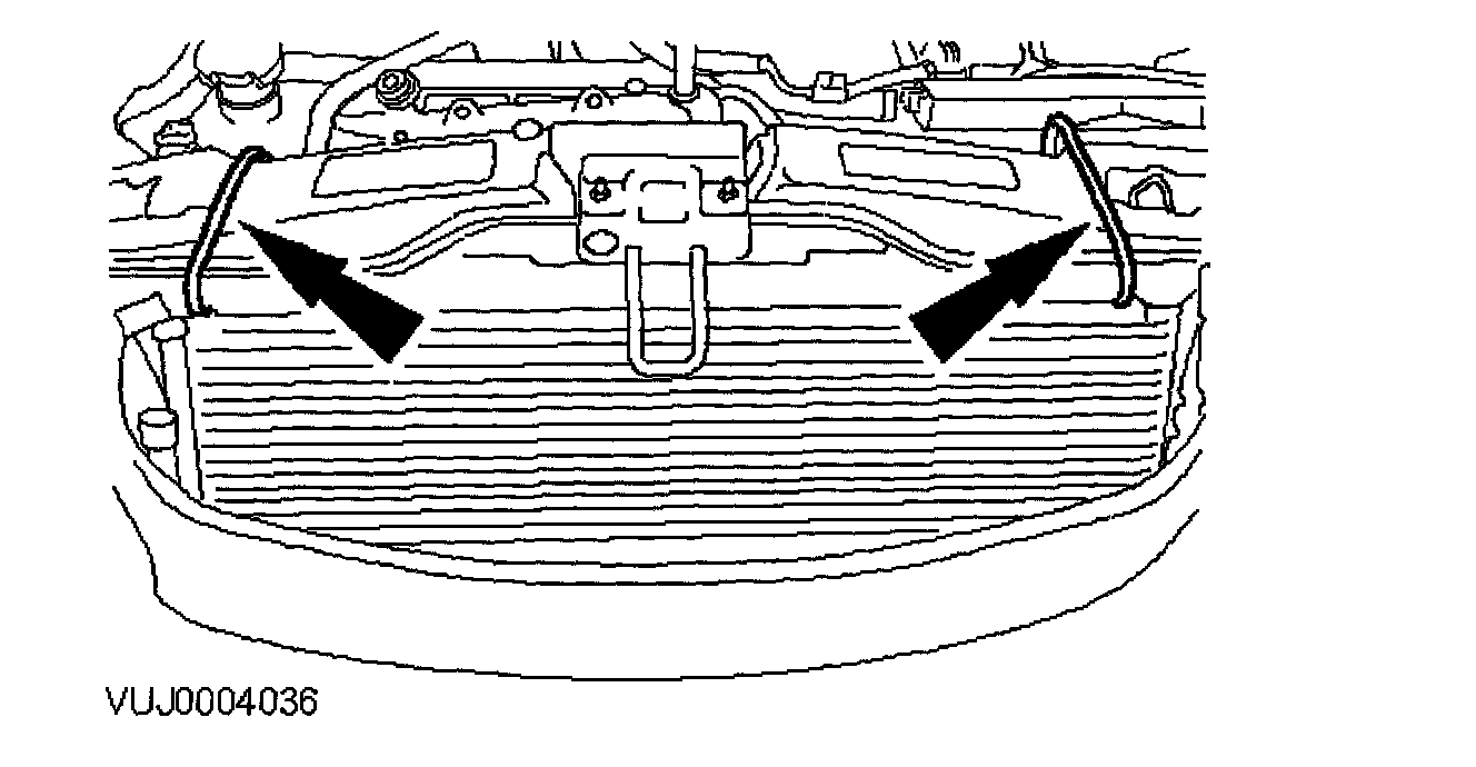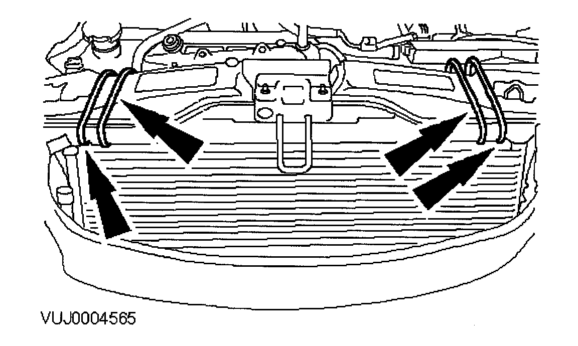 1. CAUTION: Make sure that the radiator and the air conditioning condenser are not damaged during the installation of the cooling module.
