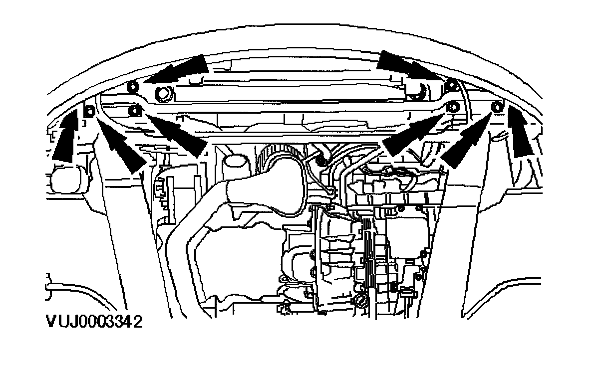 23. CAUTION: Make sure that the radiator and the air conditioning condenser are not damaged during the removal of the cooling module.