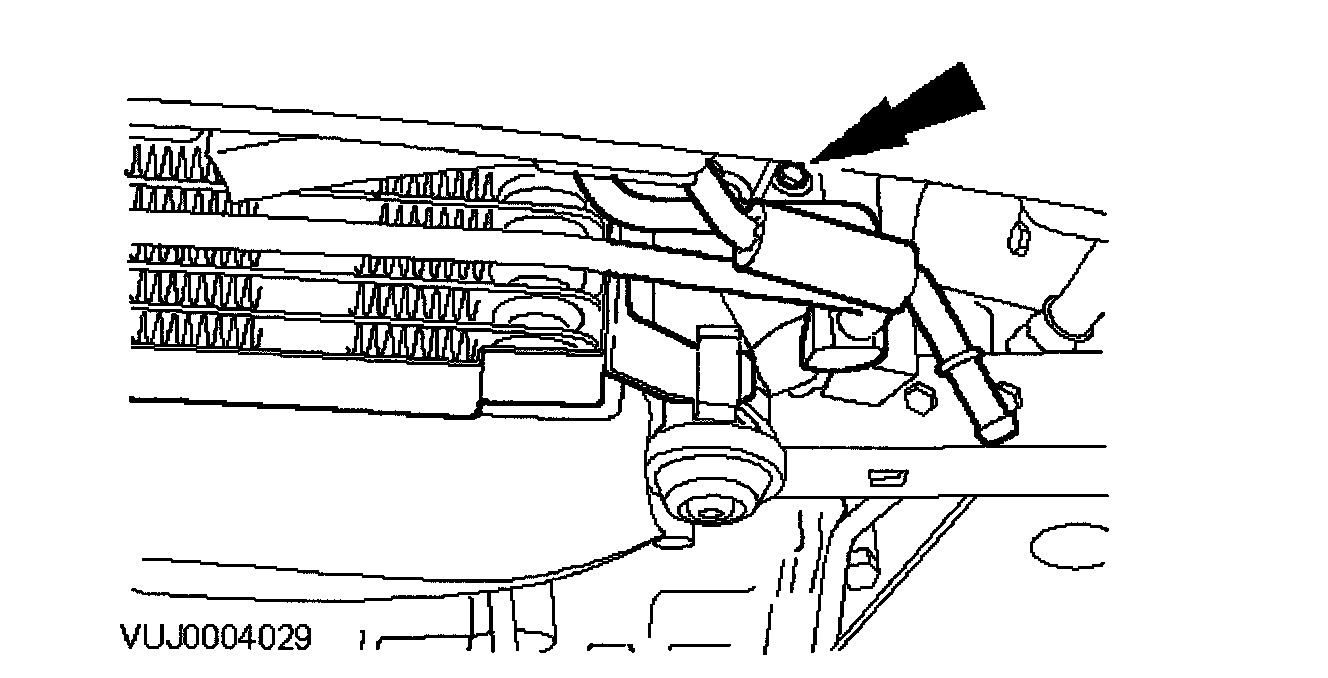 Remove the right-hand side air conditioning condenser retaining bolt from the radiator.