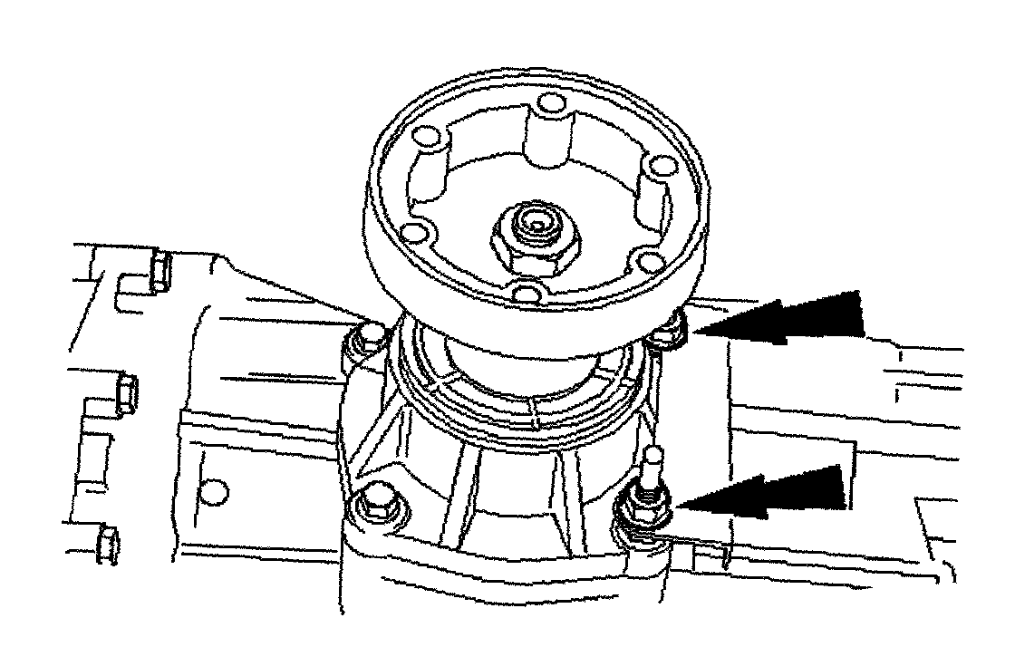 CAUTION: Make sure the shims between the transfer case housing and pinion housing are correctly aligned.