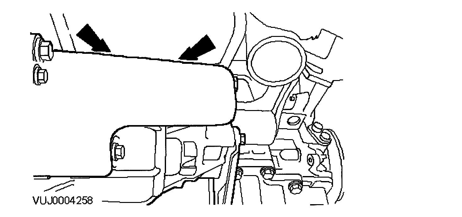 12. Install the engine anti-roll restrictor bracket top retaining bolts.
