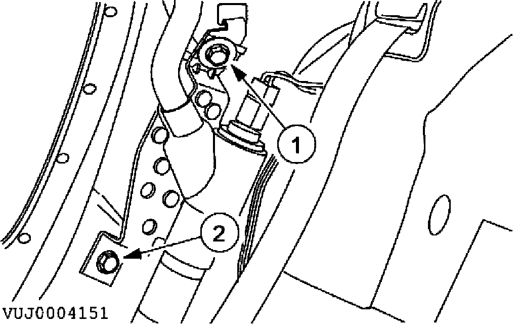 Remove the side air curtain module cord retaining bolt.