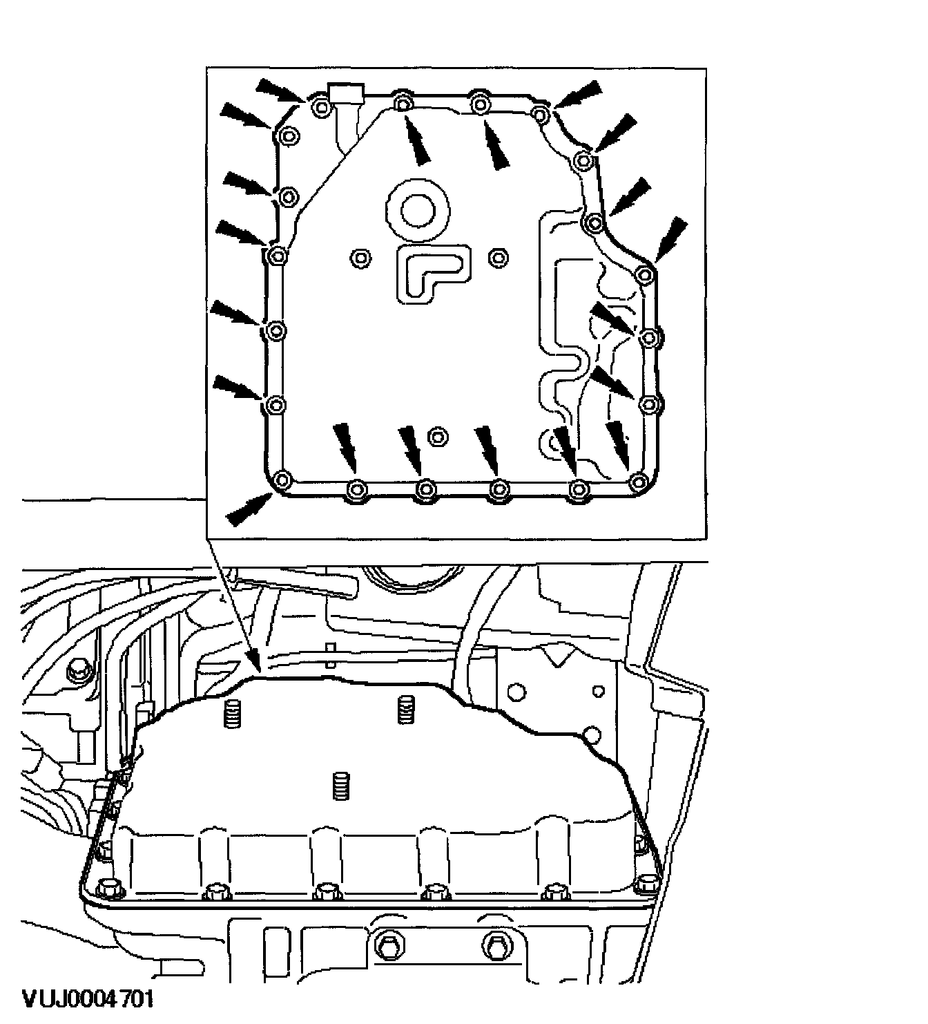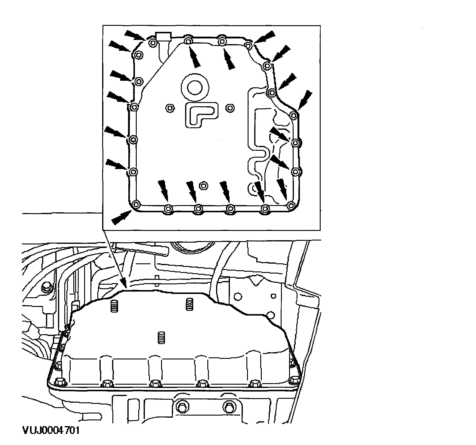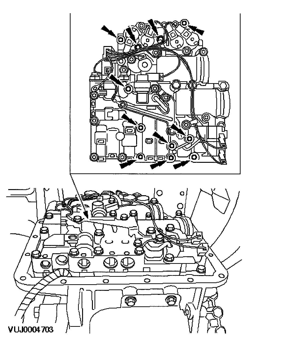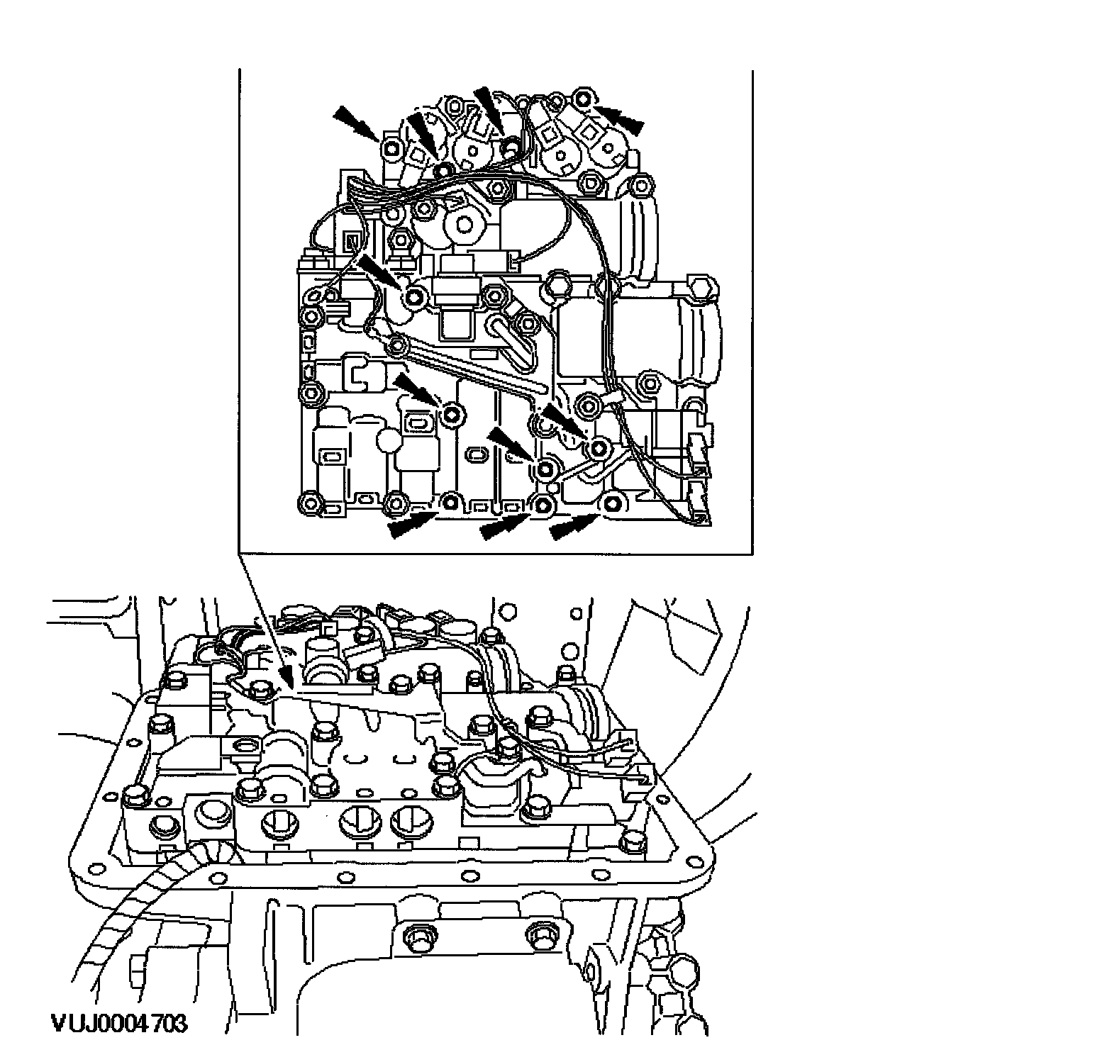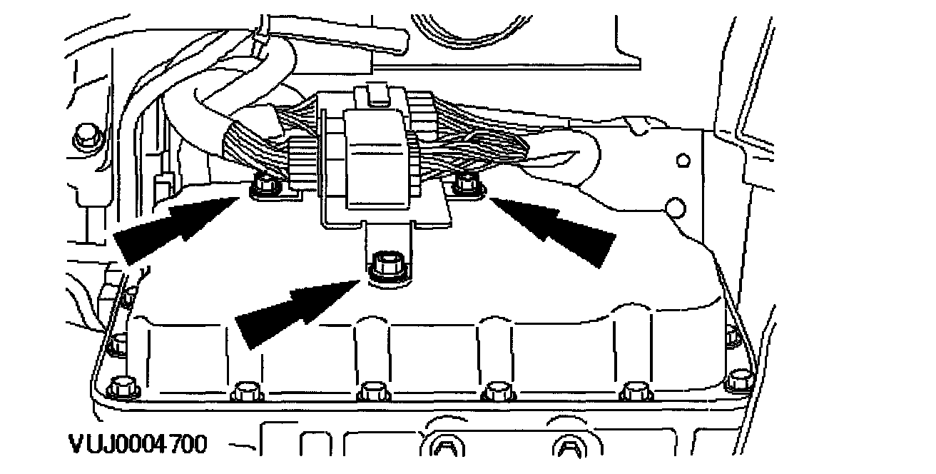 ^ Clean and inspect the main valve body cover and transmission sealing surfaces using Metal surface cleaner WSE-M5B392-A or equivalent meeting Jaguar specification.