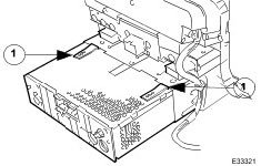 - Disconnect radio harness multiplug and position harness clear of center console.